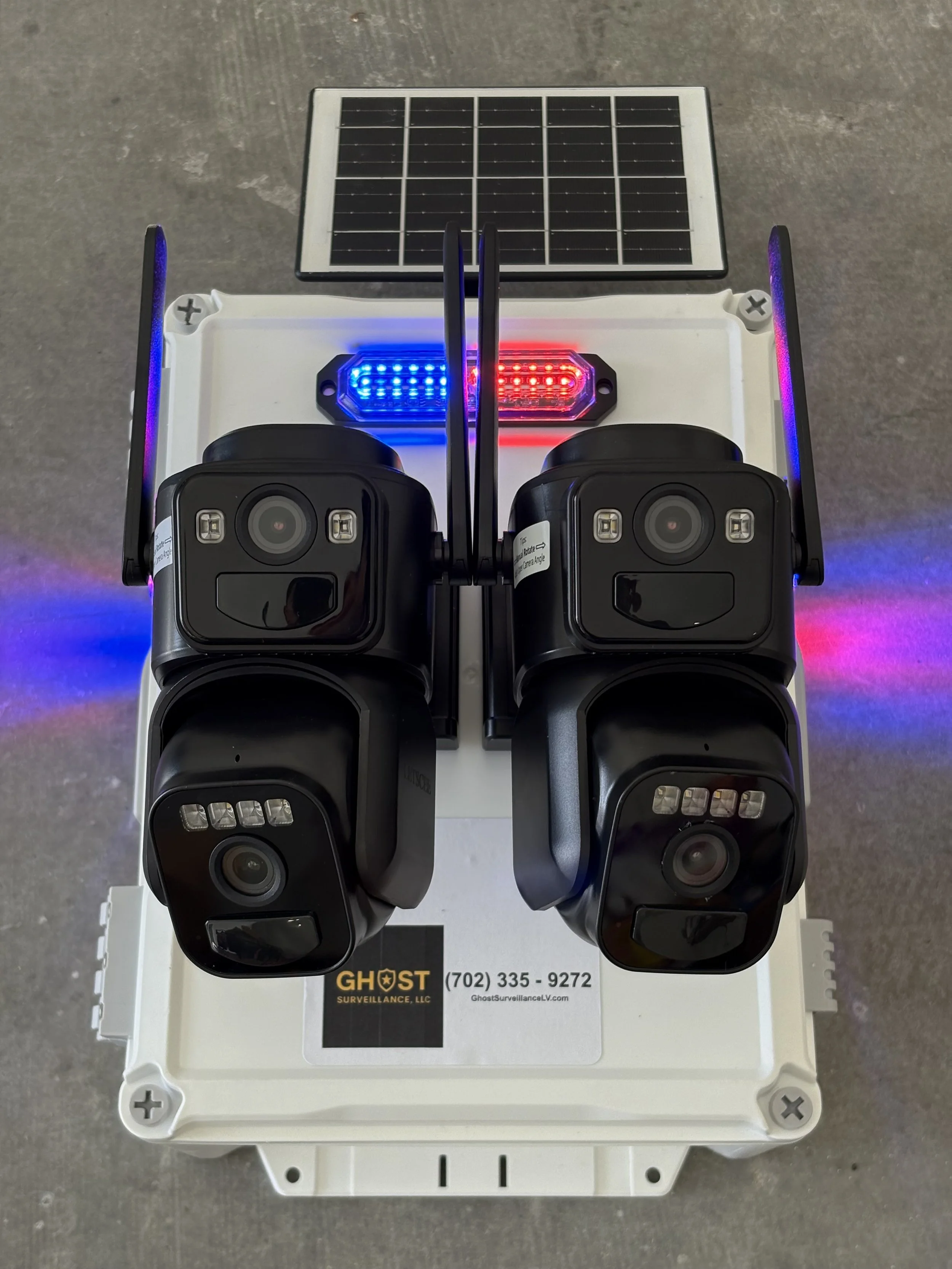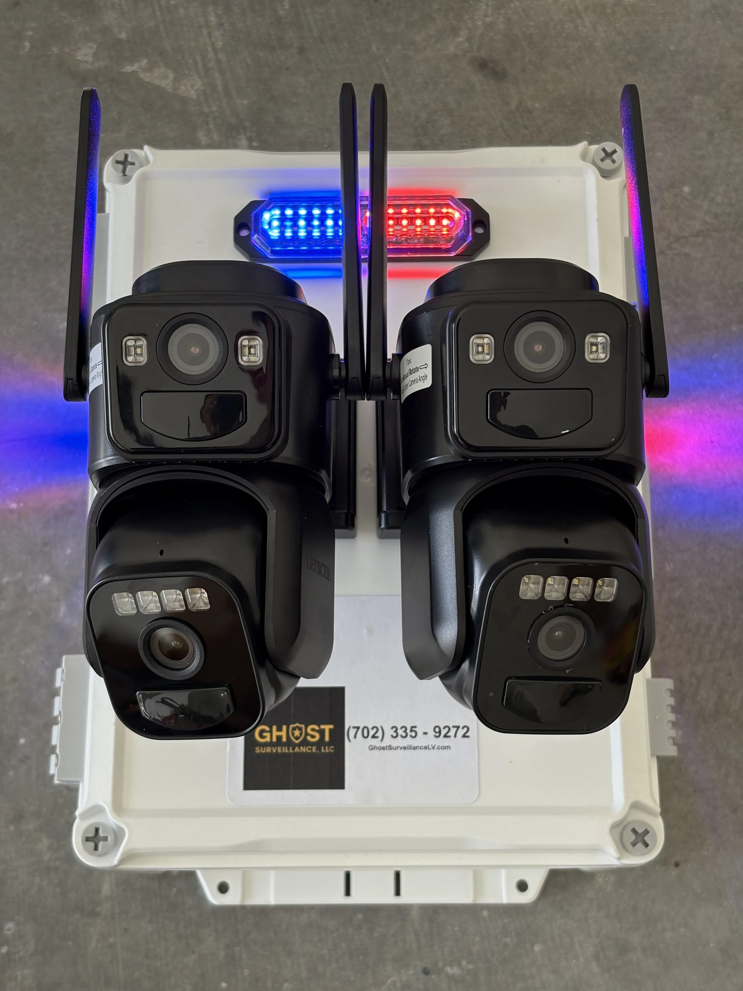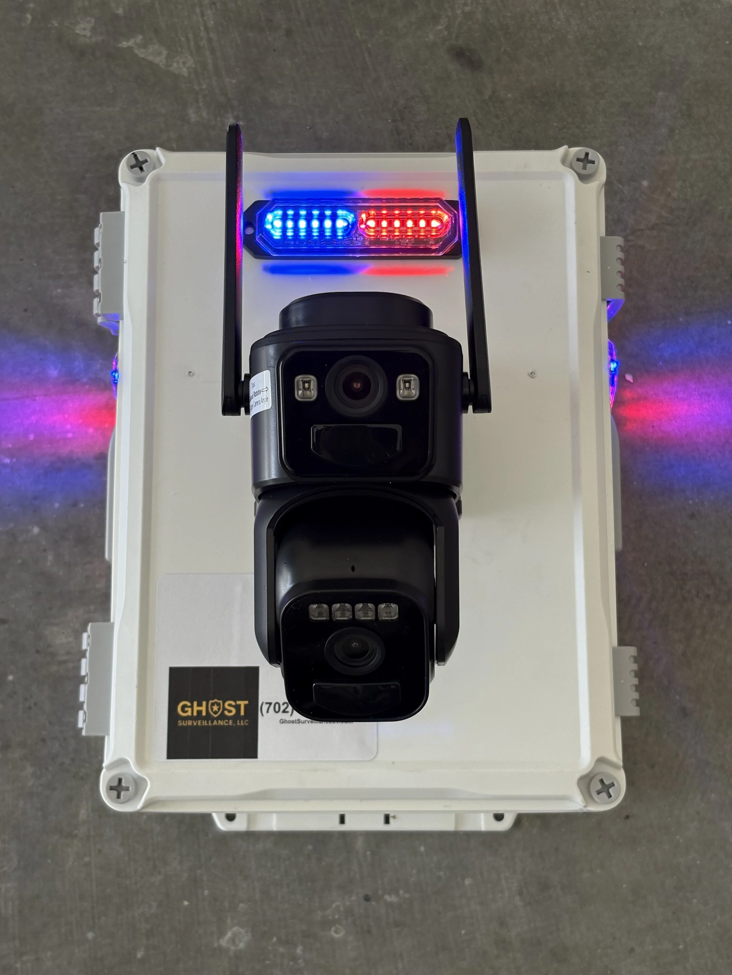 Ghost Boxes protect your site with 4k cameras, flashing strobes, and a siren that means business. Auto artificial intelligence smart tracking with human recognition. Plug-in or solar. One camera or two. Instant deterrent. Thieves don’t like attention. We give them all of it.